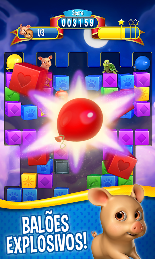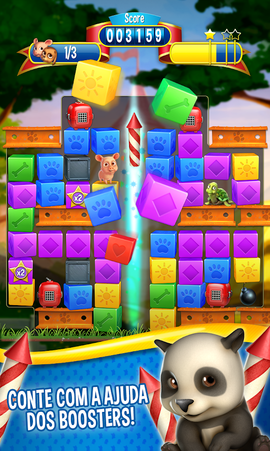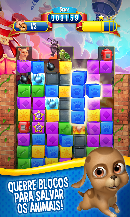 Combine dois ou mais blocos da mesma cor para completar o nível e salvar os animais dos terríveis ladrões! Há um limite de jogadas, portanto, o planejamento é essencial. Suas habilidades com quebra-cabeças serão colocadas à prova em muitas horas de diversão!